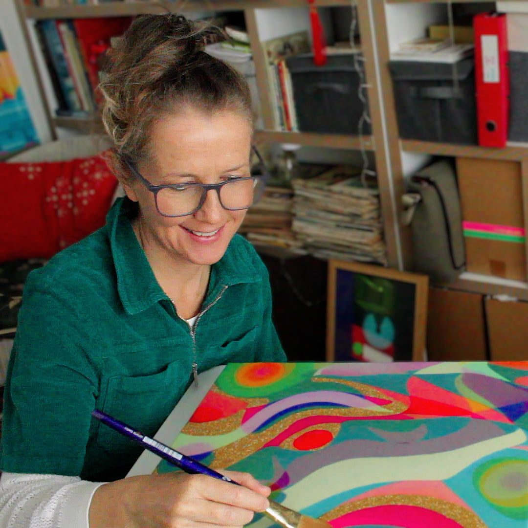 The creator behind Pop Olive Art. I'm a London-based artist blending my background as an author, illustrator, and therapist to navigate life through vibrant, abstract art.