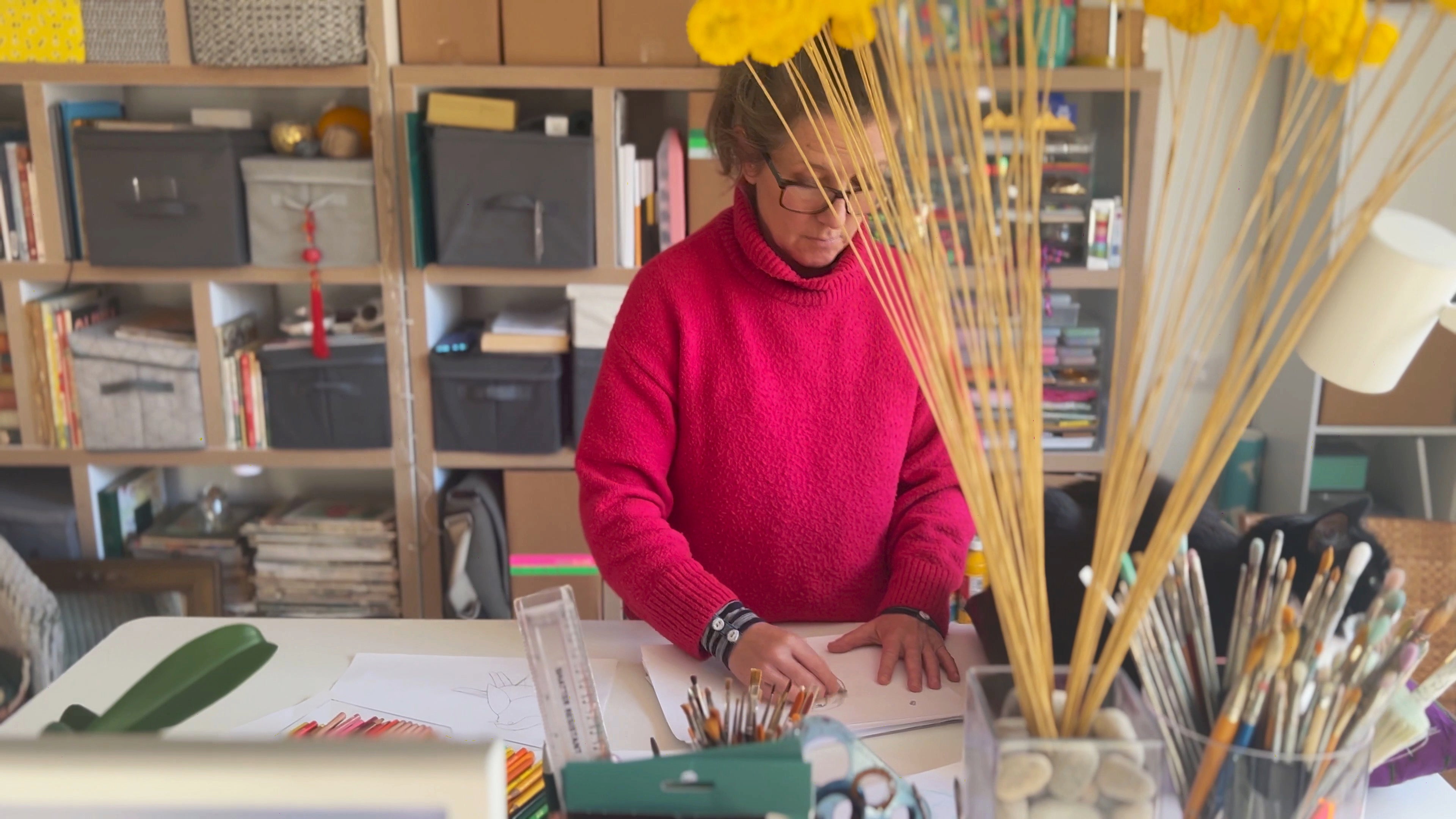 When inspiration strikes, I sketch out ideas with Sharpie pens, highlighters, and pencils. Each piece is born from a burst of energy, ideas, and expressive mark-making.