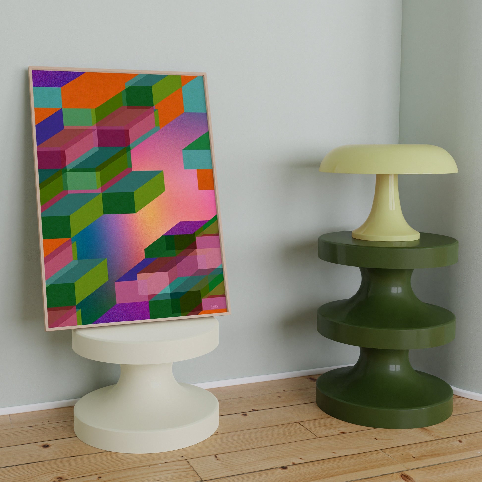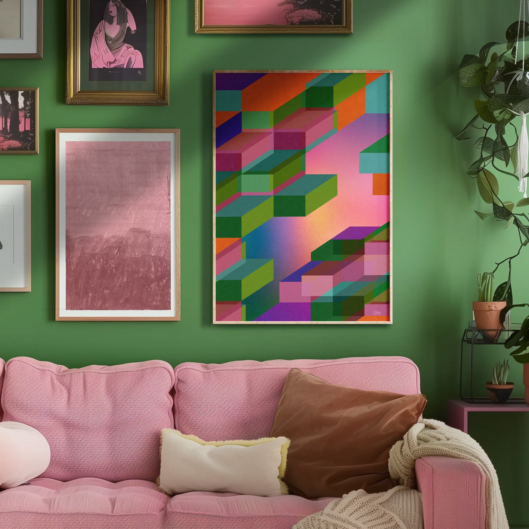 Introducing Abstract 1, a captivating piece that brings an explosion of colour and geometric precision to any space. This print embodies the vibrant and dynamic spirit that lies at the heart of Pop Olive Art, blending bold hues and layered shapes to create a playful and profound visual experience. Perfect for adding a touch of modern elegance to your home, this piece will invite viewers to explore the intricate dance of colour, form and space.