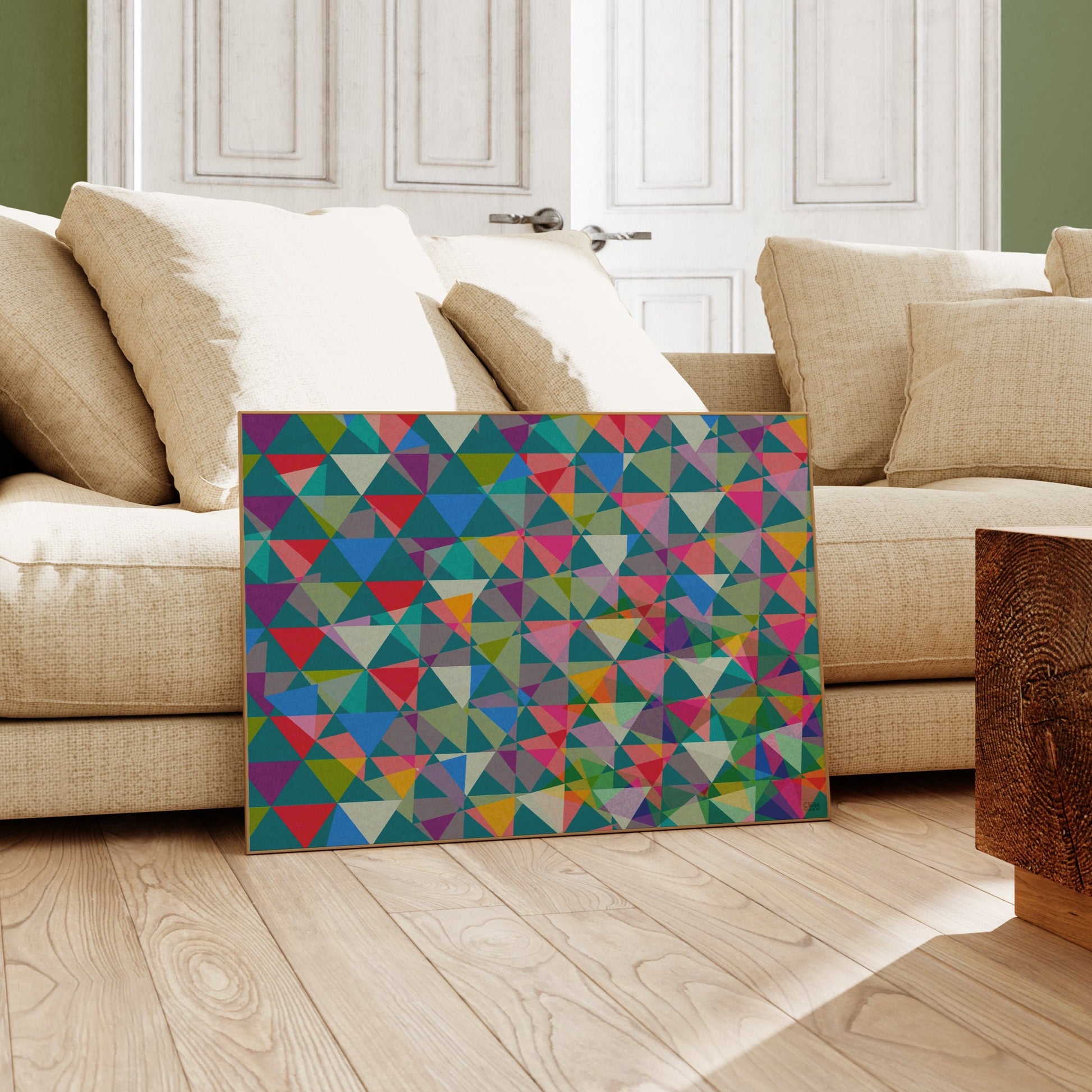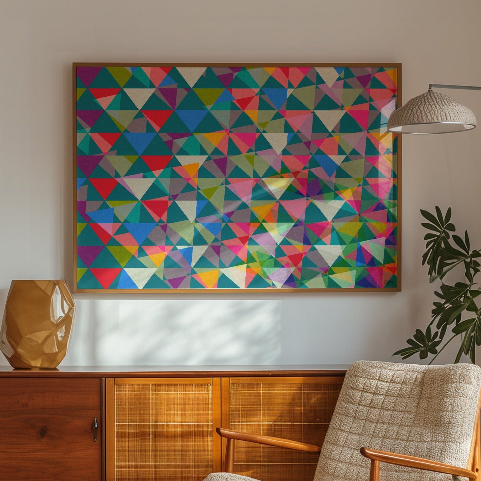 Bunting is a captivating piece that breathes life into any space with its vibrant geometric abstraction. This digital collage, a delightful blend of bold colours and dynamic shapes, captures the essence of joy and the celebration of life. Perfect for brightening up your space, this print invites you to embrace a sense of wonder and happiness in your daily life.