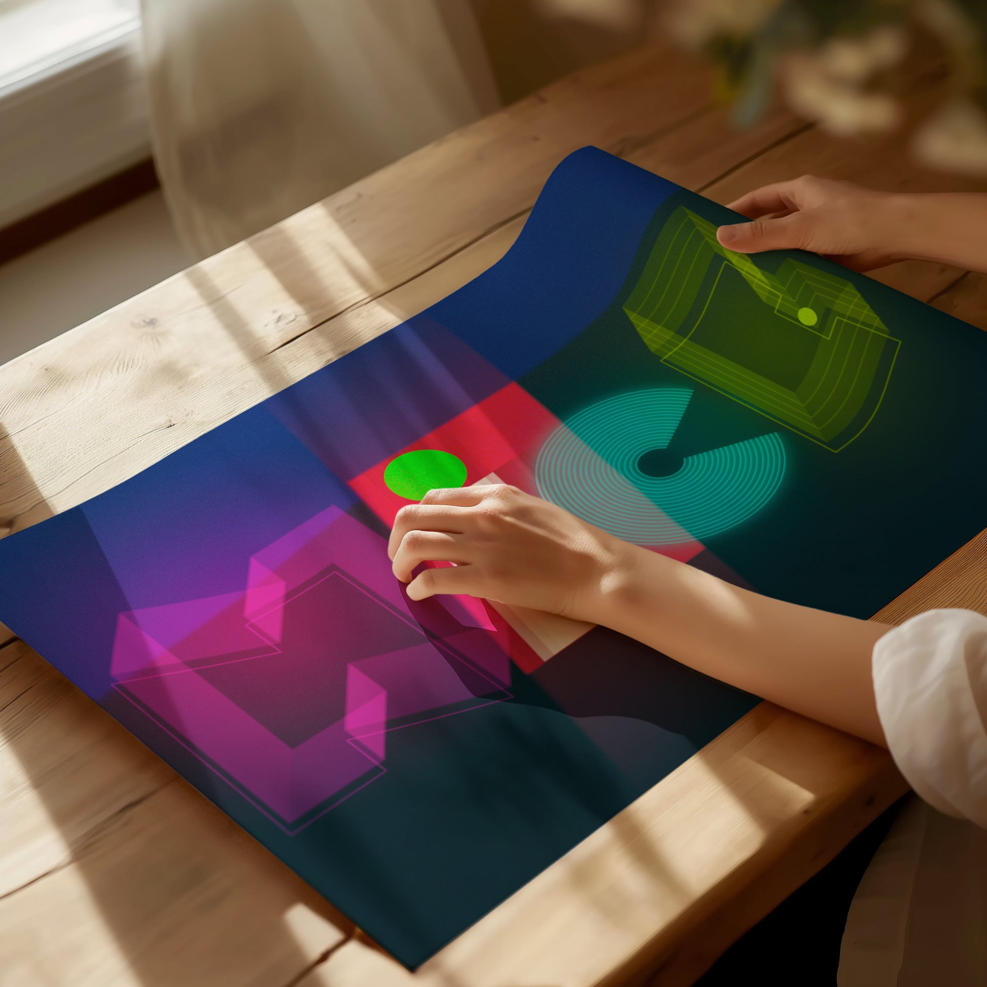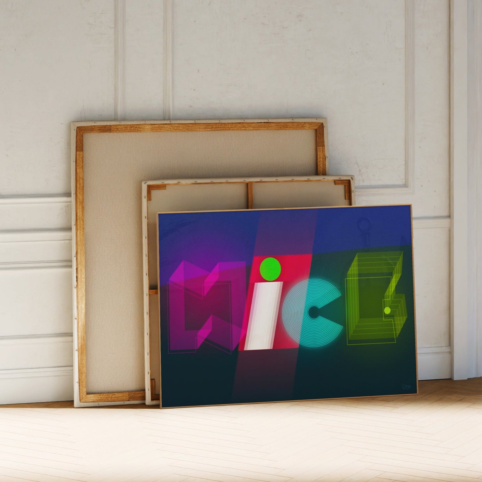 Brighten up your space with NiCE. This vibrant, eye-catching print blends bold geometric shapes and lively colours, encapsulating the spirit of joy and excitement. Each element is designed to resonate with the zing of life. Perfect for adding a pop of colour and a touch of modern abstract style to any room, NiCE serves as a daily reminder to embrace life's pleasures and challenges. Elevate your home decor with this stunning print that promises to inspire and uplift.