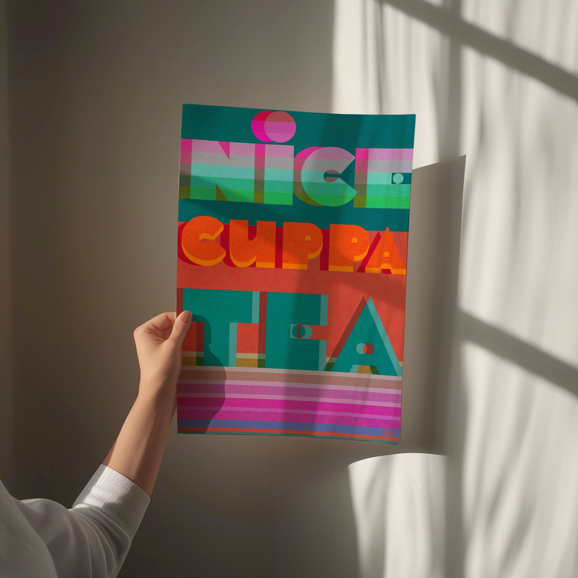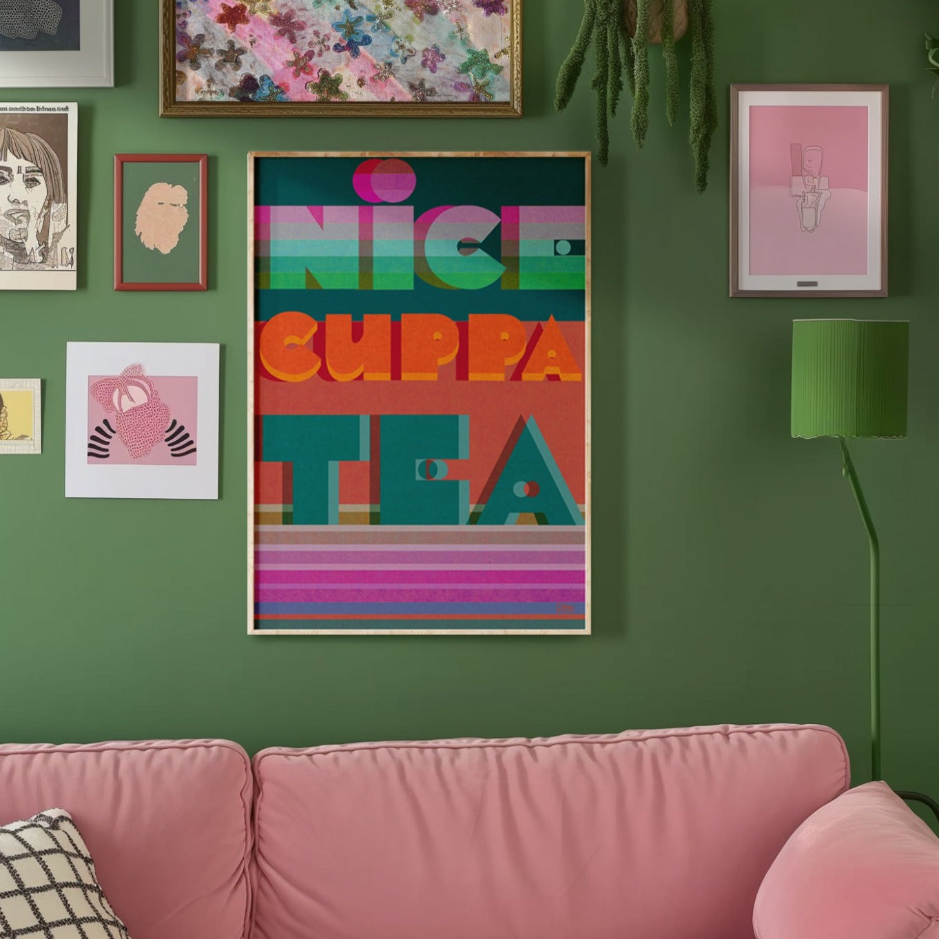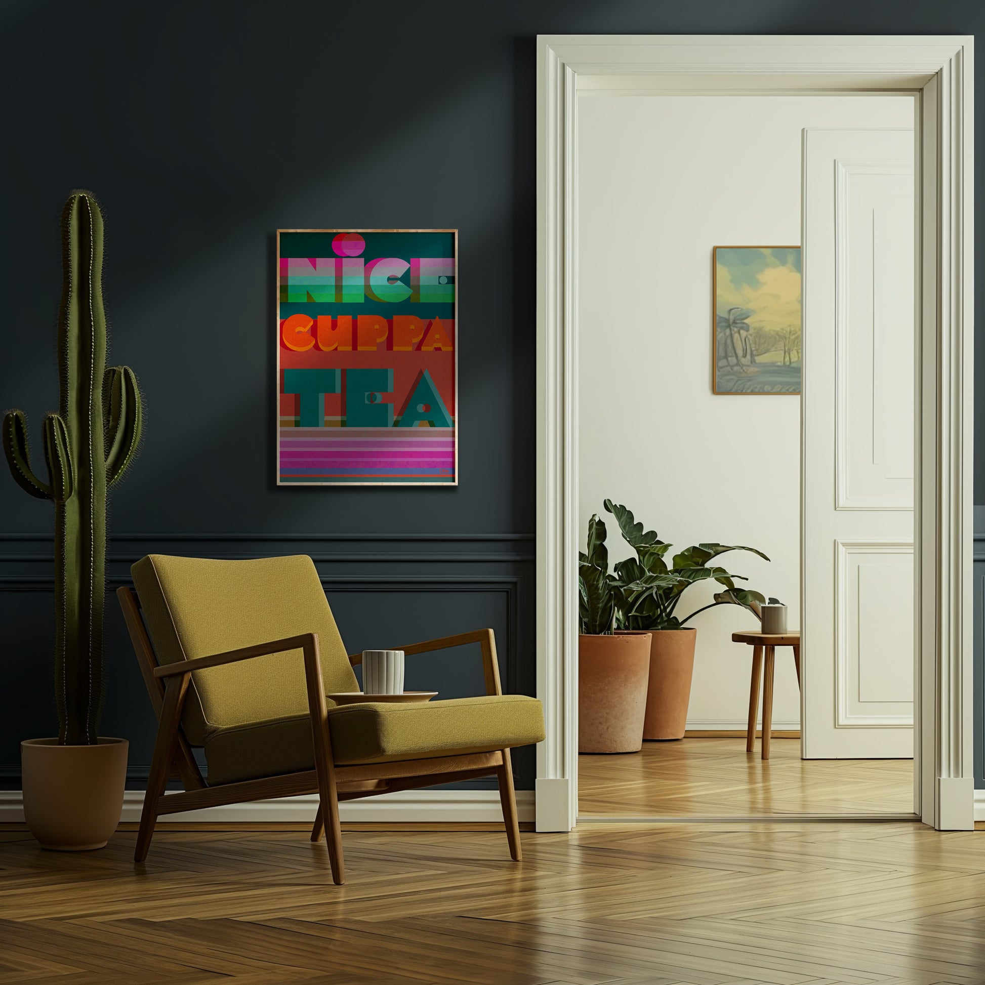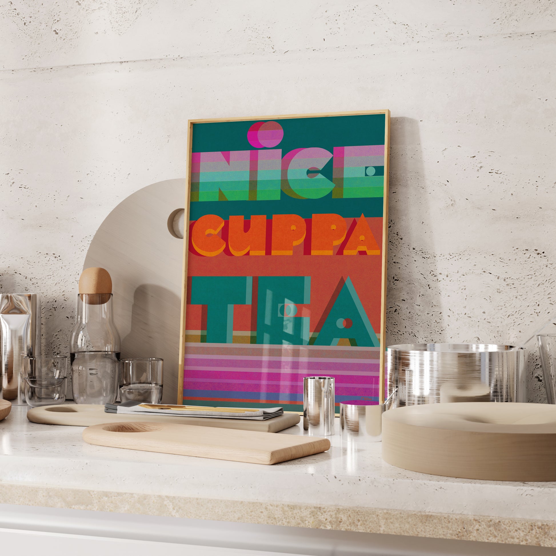 Infuse your space with a splash of colour and a touch of whimsy with Nice Cuppa Tea. This vibrant piece radiates the joy of taking a break, perfectly capturing the simple pleasure of a comforting cup of tea. The bold geometric shapes and rich, layered textures come together in a dynamic dance of colour, making it a striking addition to any room. Ideal for brightening up your kitchen, living area, or office, this print is a celebration of life's everyday joys and a reminder to find beauty in the little moments. Let Nice Cuppa Tea bring a burst of happiness and a touch of modern flair to your home.